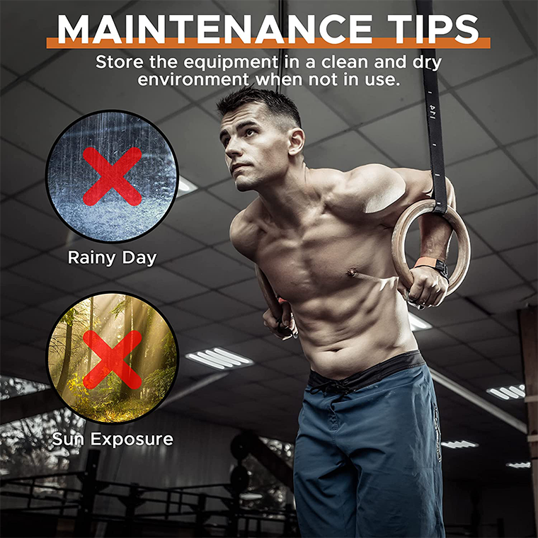 1500lbs Capacity The 32mm thick exercises gymnastic rings are made of birch wood, which is a natural material used for making premium sports gear. The pull up rings have great weight capacity up to 1500lbs/680kg, secure and durable. Wider Adjustable Straps Our 1.5 inches/3.8cm straps are wider than the competition, so they are safer and more durable. The adjustable straps with scale ensure that the training rings are always at the same height. The little touch fasteners we provide help you tidy up the strap ends so they don’t get in your way during the exercise.